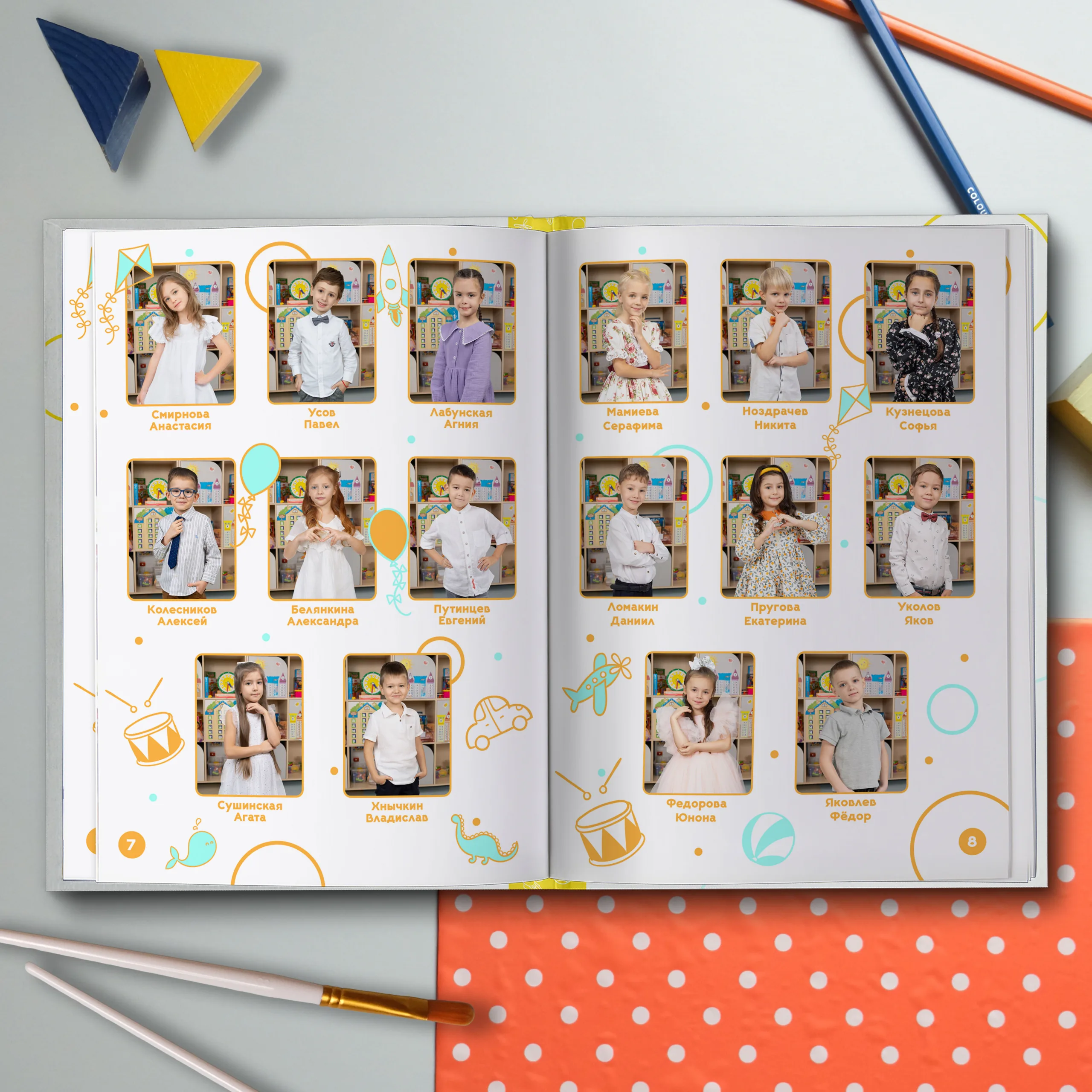 3ий разворот и далее — личные страницы выпускников (портретная фотография и информация)