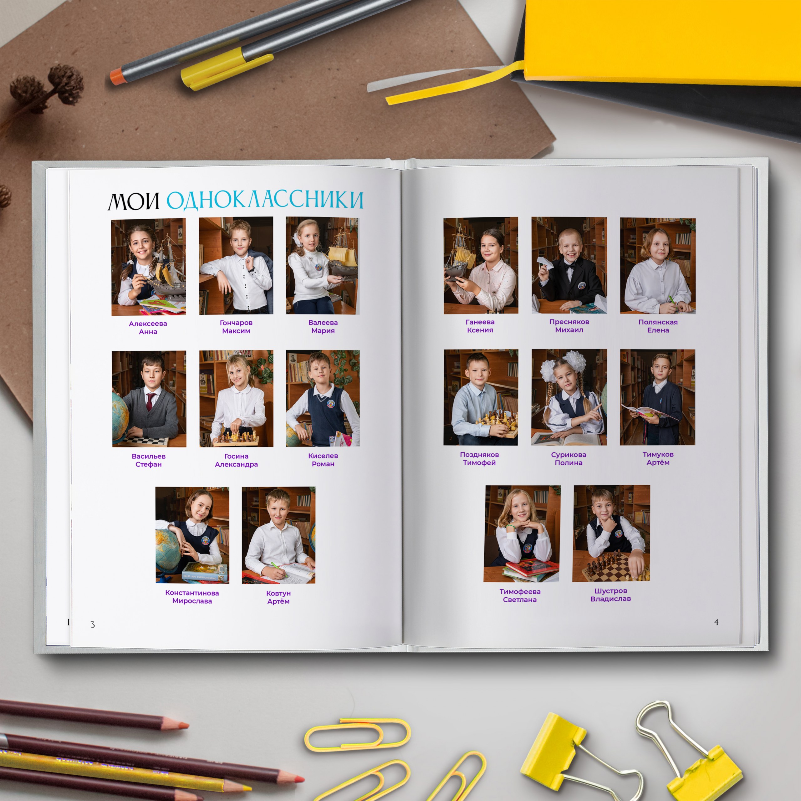 Последние 3 разворота — общие репортажные фотографии класса (20шт.)