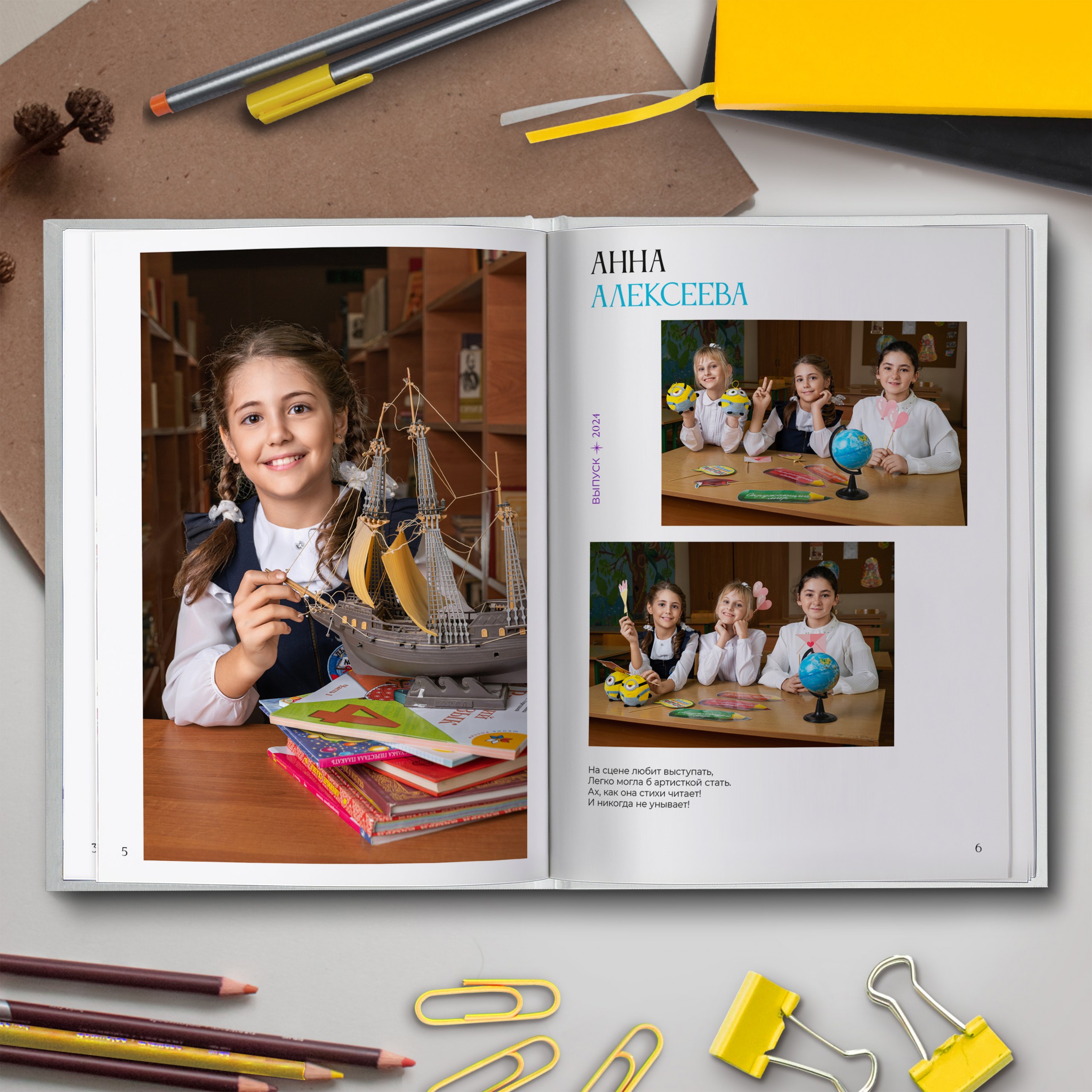 3ий разворот и далее — по 2 личные страницы на ребенка
